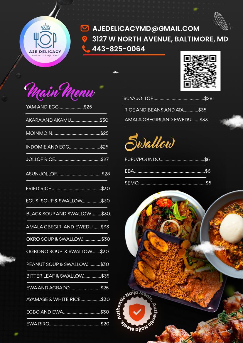 The Aje Delicacy Menu brings a delightful mix of traditional West African dishes, with a special focus on Nigerian cuisine, guaranteed to satisfy a variety of tastes. Whether you're craving something hearty for breakfast or a filling main meal, their offerings never disappoint. Start your day with classic breakfast items like Yam and Egg, Atadindin, or the comforting Akara and Akamu/Custard, perfect for those seeking a savory or sweet beginning. For an even more satisfying option, Moi Moi and Akamu/Custard and Indomie and Egg are also available, delivering both flavor and energy.
